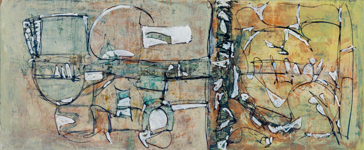 ![]() "Outerland" #211-5 h37" x w86" Acrylic on canvas (Sold) | ||