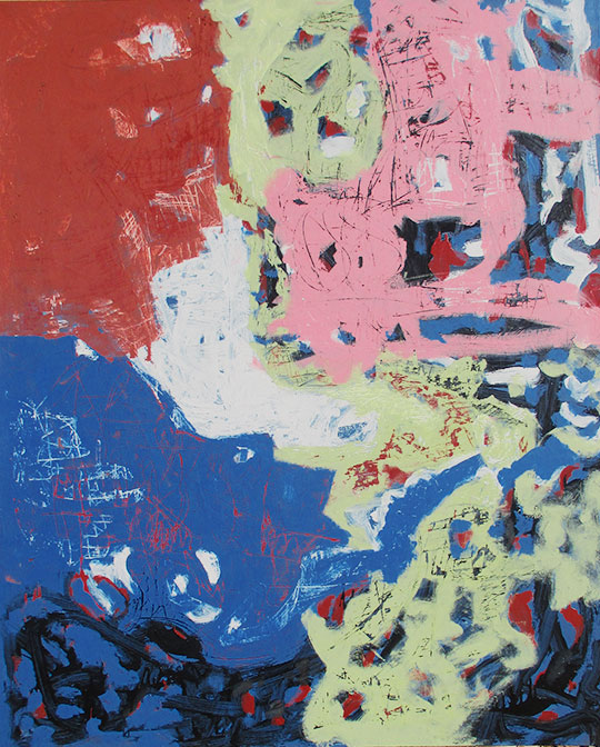 "vivid red, deep blue" #213-14 h71" x w47.5" Acrylic on canvas | |