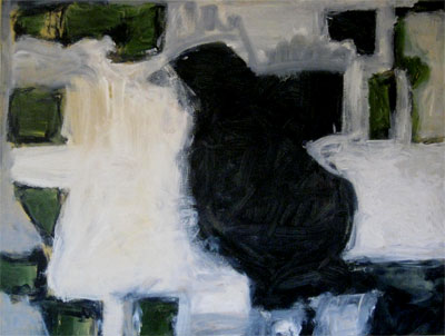 ![]() | “Black-Green-White” h 72.5 x w 53.5 inches Acrylic on canvas (Sold) | |